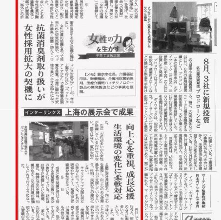 2016年9月22日,日本中部经济新闻对INTER LINX株式会社「重视发挥女性员工的力量以及儿童教育公益活…
